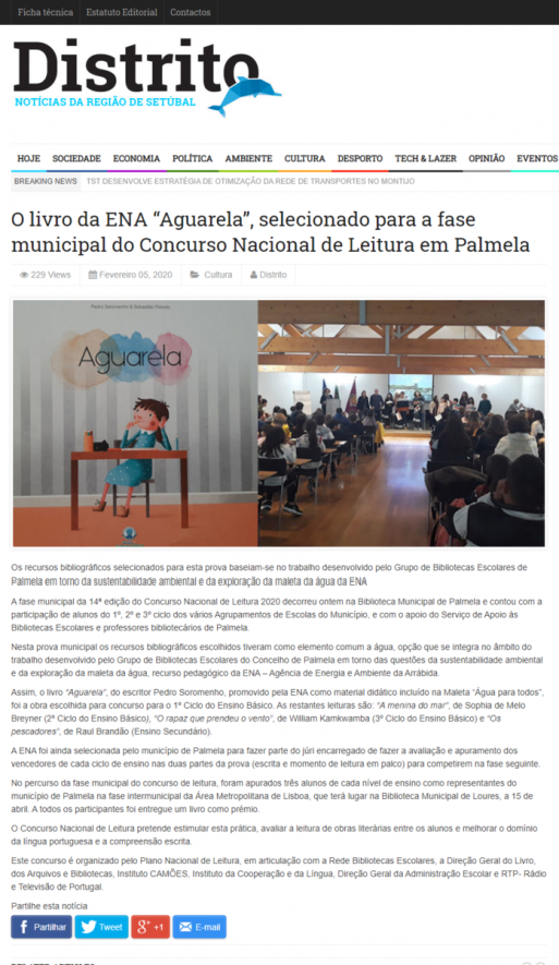 Distrito. O livro “Aguarela”, do escritor Pedro Soromenho, promovido pela ENA como material didático incluído na Maleta “Água para todos”, foi a obra escolhida para concurso para o 1º Ciclo do Ensino Básico.