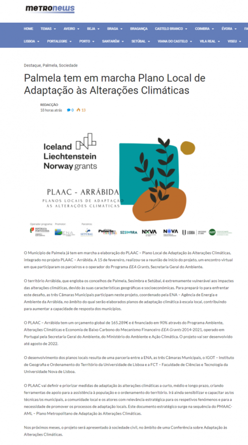 Agência de Energia da Arrábida está a desenvolver planos locais de Adaptação às Alterações Climáticas para os municípios de Setúbal, Palmela e Sesimbra