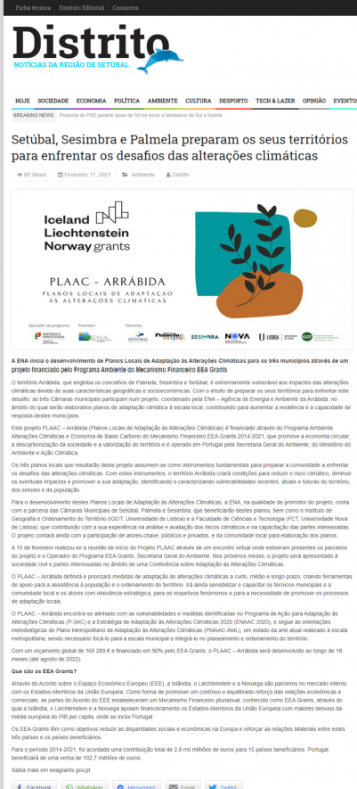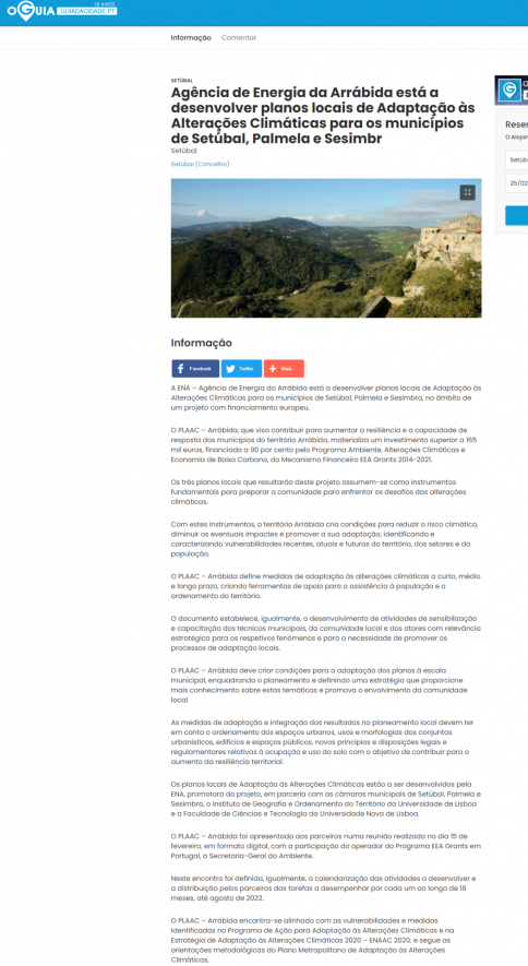 Guia da Cidade. A ENA – Agência de Energia da Arrábida está a desenvolver planos locais de Adaptação às Alterações Climáticas para os municípios de Setúbal, Palmela e Sesimbra, no âmbito de um projeto com financiamento europeu.