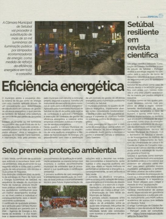 O Setubalense. Suplemento Especial - Setúbal Preparada. Território Resiliente às Alterações Climáticas. O Selo Verde, certificado de qualidade que estimula e reconhece boas práticas ambientais, está atualmente na sua segunda edição e conta com a participação de seis empresas, oito escolas e duas juntas de freguesia. O certificado é atribuído pela Câmara Municipal de Setúbal em parceria com a ENA.