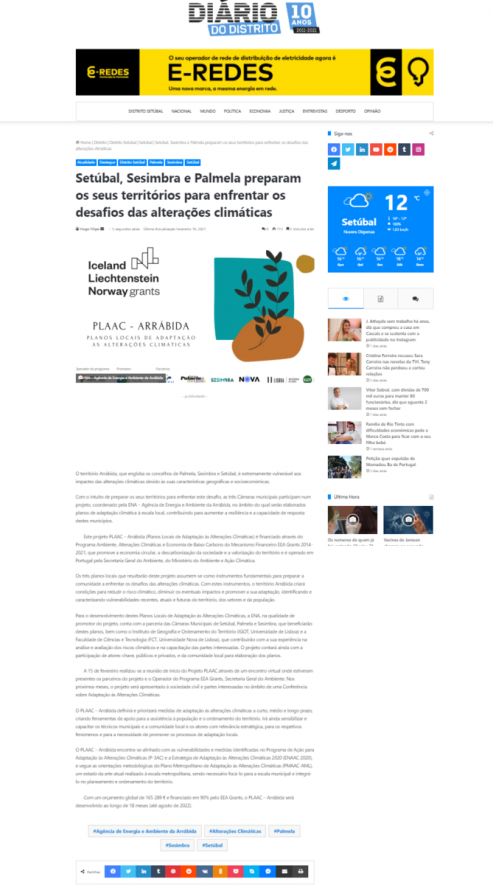 Com o intuito de preparar os seus territórios para enfrentar este desafio, as três Câmaras municipais participam num projeto, coordenado pela ENA – Agência de Energia e Ambiente da Arrábida, no âmbito do qual serão elaborados planos de adaptação climática à escala local, contribuindo para aumentar a resiliência e a capacidade de resposta destes municípios.
