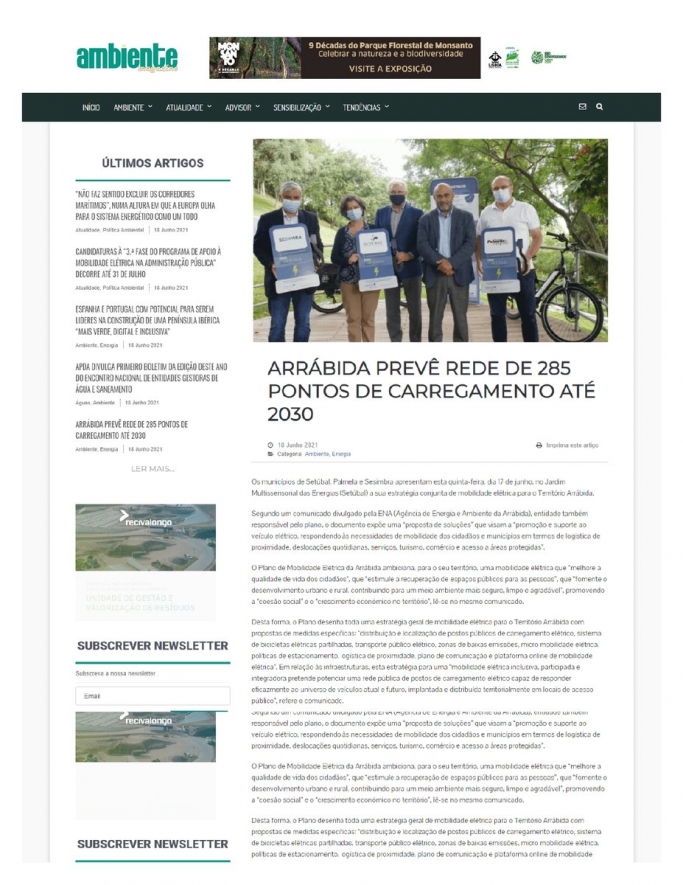 O Plano de Mobilidade Elétrica da Arrábida é fruto do trabalho conjunto da ENA e dos municípios de Setúbal, Palmela e Sesimbra e enquadrado no projeto “EnerNetMob: Mediterranean Interregional Electromobility Networks for intermodal and interurban low carbon transport systems”. Este projeto está cofinanciado pelo Fundo Europeu de Desenvolvimento Regional (FEDER) no âmbito do Interreg MED, Programa Operacional de Cooperação Territorial Europeia (CTE).