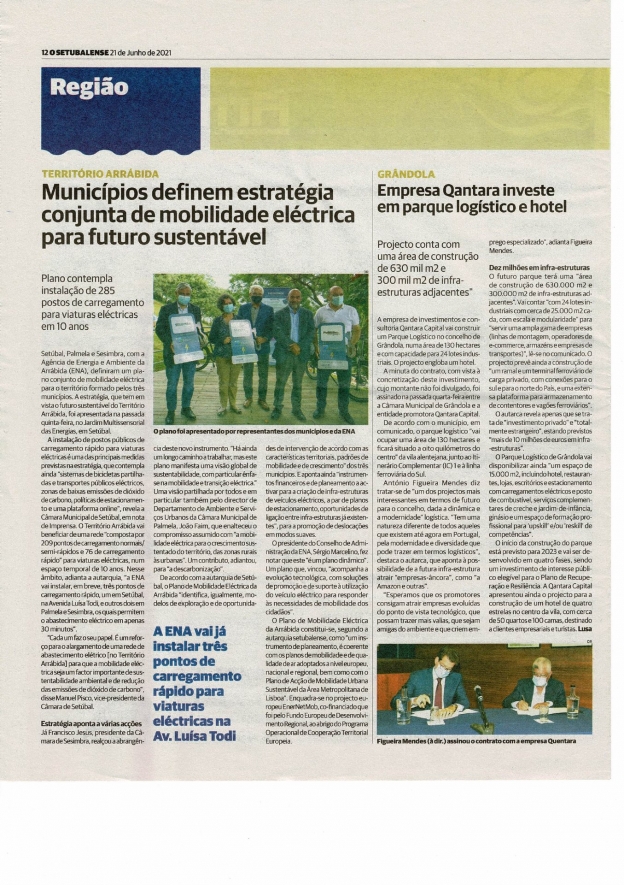 Setúbal, Palmela e Sesimbra, com a Agência de Energia e Ambiente da Arrábida (ENA), definiram um plano conjunto de mobilidade eléctrica para o território formado pelos três municípios. A estratégia, que tem em vista o futuro sustentável do Território Arrábida, foi apresentada na passada quinta-feira, no Jardim Multissensorial das Energias, em Setúbal.
