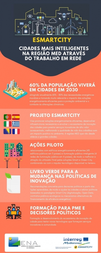 Para mais informações sobre o projeto ESMARTCITY não hesitem em contactar a ENA, Agência de Energia e Ambiente da Arrábida na Avenida Belo Horizonte, Edifício Escarpas Santos Nicolau, em Setúbal, através do e-mail: geral@ena.com.pt, telefone 265 546 194, ou visite o site do projeto ESMARTCITY e do Programa Interreg MED.